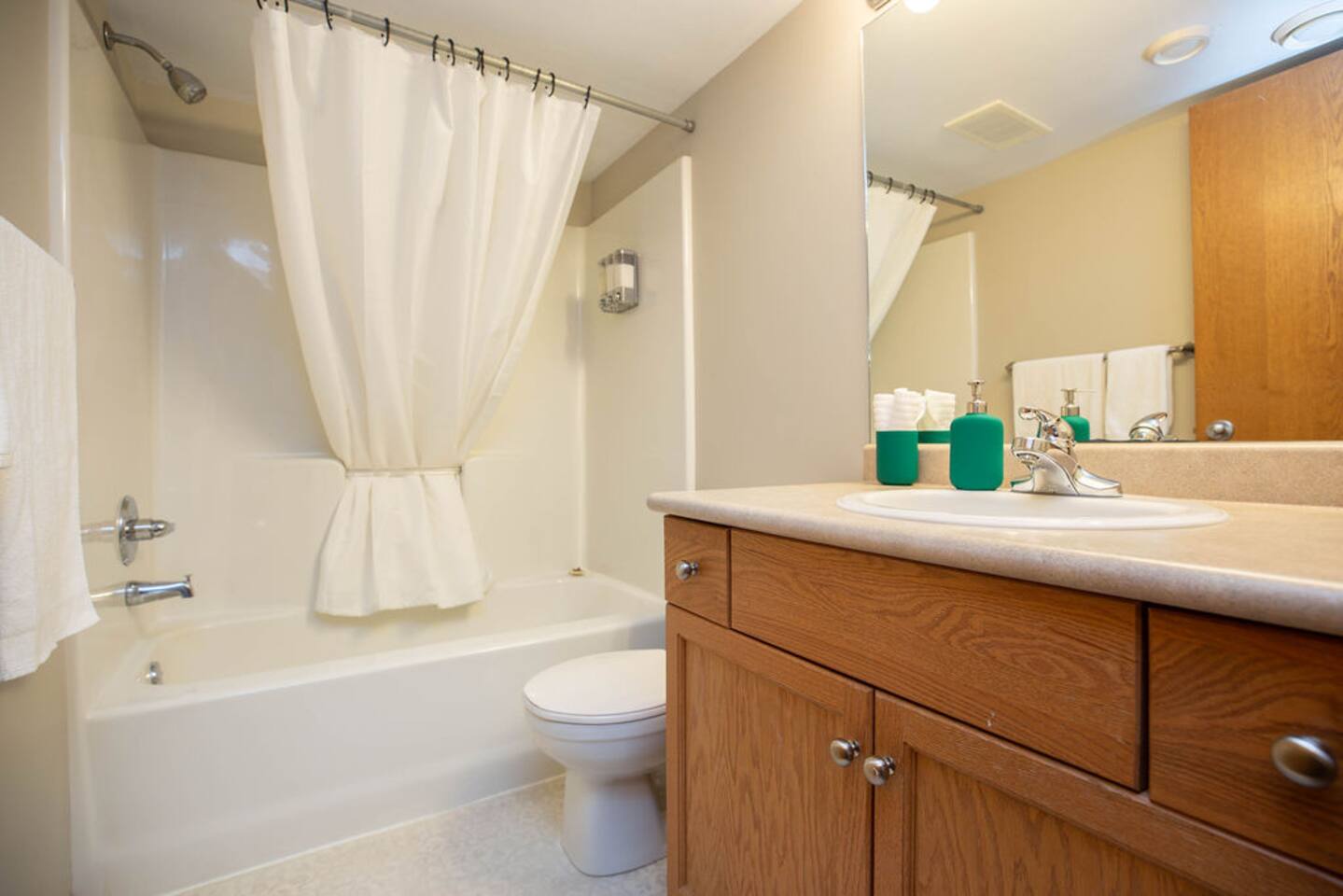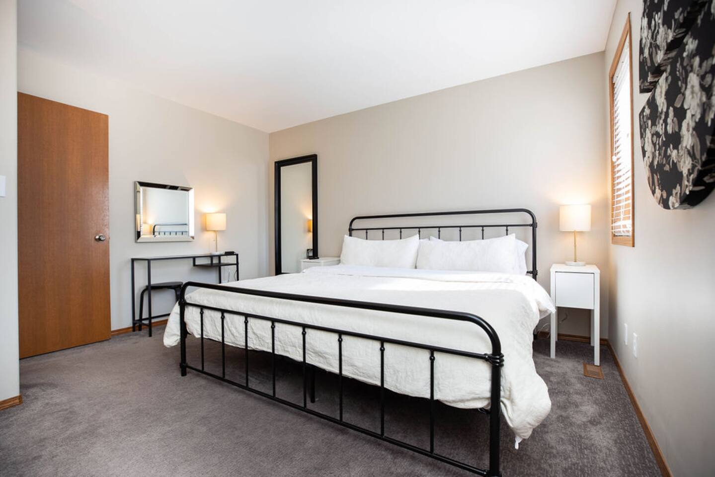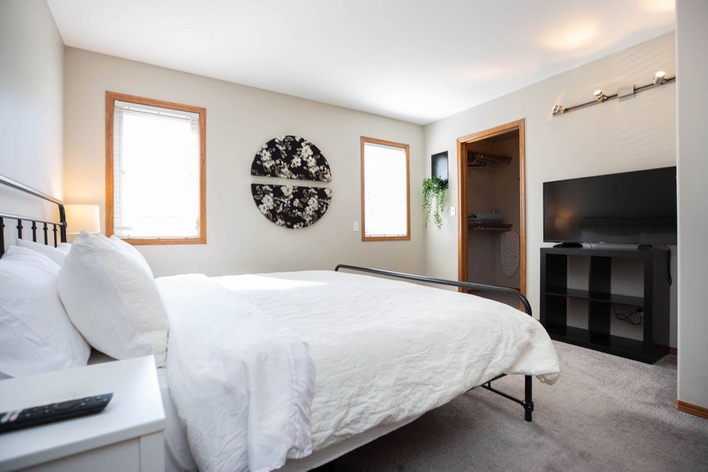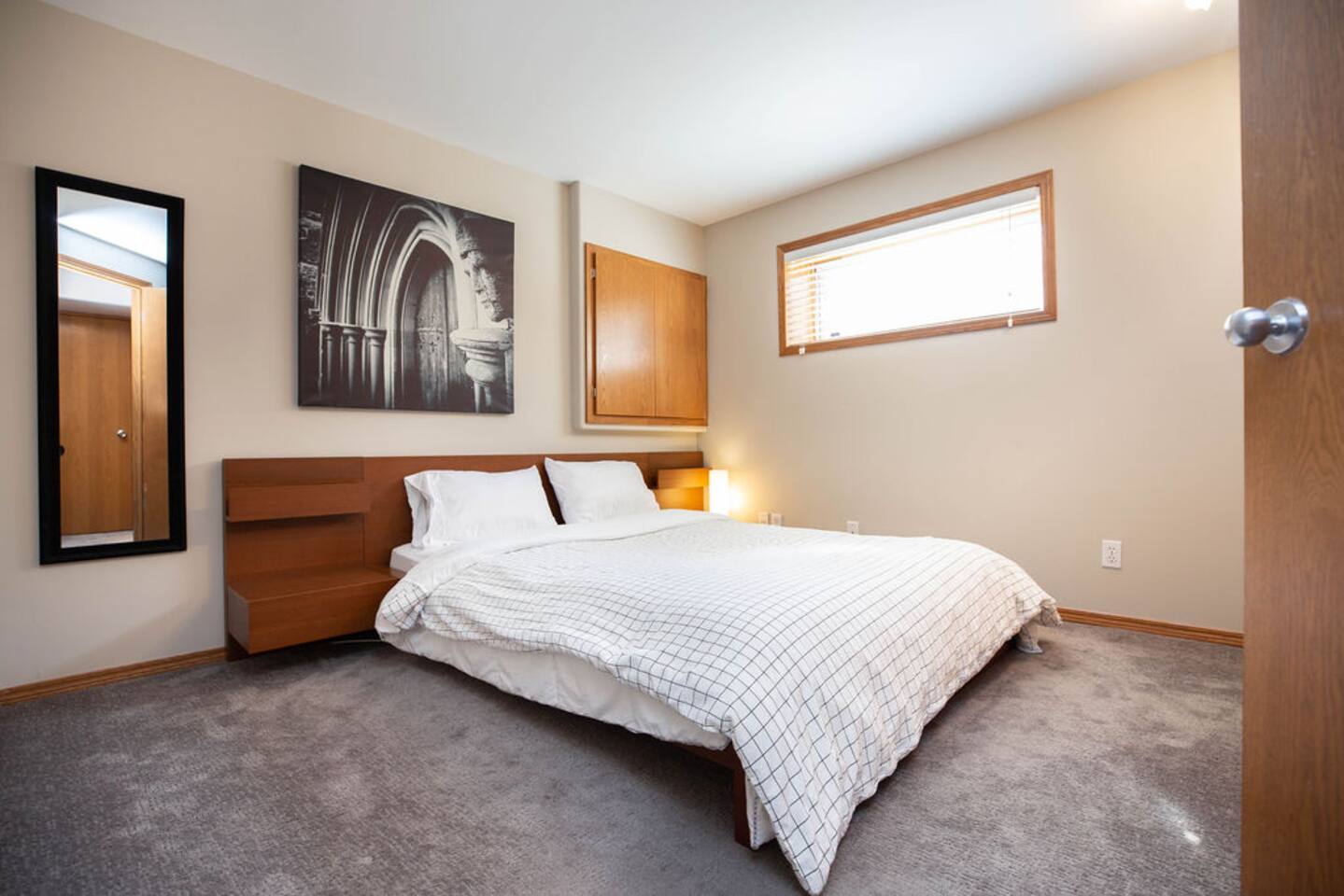 This well laid out home has many thoughtful touches that we are proud to offer you. - Queen beds or larger in all bedrooms rooms with quality mattresses. - Master bedroom with King bed, walk in closet and stand up vanity. - secondary rec-room in lower level with TV is perfect for kids or extra guests. - Private outdoor patio at rear of home. - Complimentary coffee / tea station. - Luggage racks conveniently located in all rooms. - 2 full washrooms fully equipped with towels, hand soap, body wash and shampoo. - well lit and spacious parking for 2 at the rear of the home. - Free wifi - Free laundry machines (soap provided)